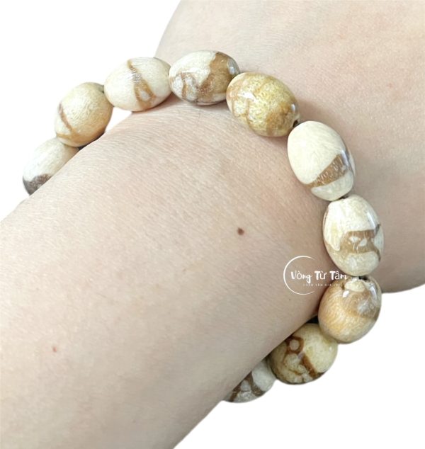 Vòng Tay San Hô Trắng Hóa Thạch – Mẫu Hạt Bầu Dục, đơn giản nhưng tinh tế