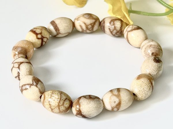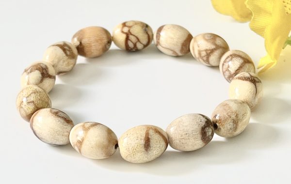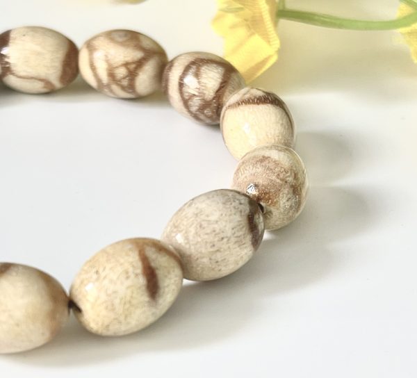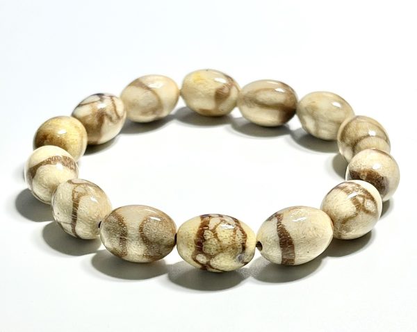 Vòng Tay San Hô Trắng Hóa Thạch – Mẫu Hạt Bầu Dục (đốt nhộng)
