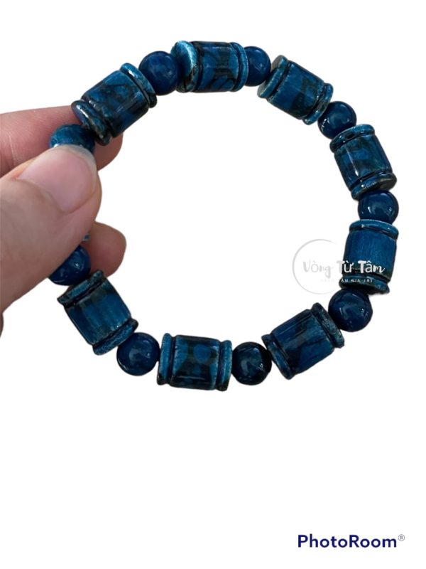 Vòng San Hô tự nhiên màu xanh dương – Mẫu đốt trúc, 9 hạt 9 trụ