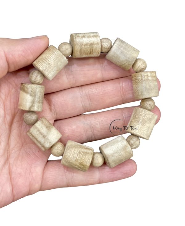 ✓ Từng hạt, từng trụ Trầm hương trên vòng đều có màu vàng nâu nhạt, đúng màu tự nhiên của gỗ Trầm, vân dầu đẹp tự nhiên, hương thơm dịu ngot.